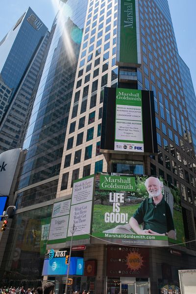 'Life is Good!' Dr. Marshall Goldsmith Makes An Appearance in Times Square, 2019. (New York, NY)